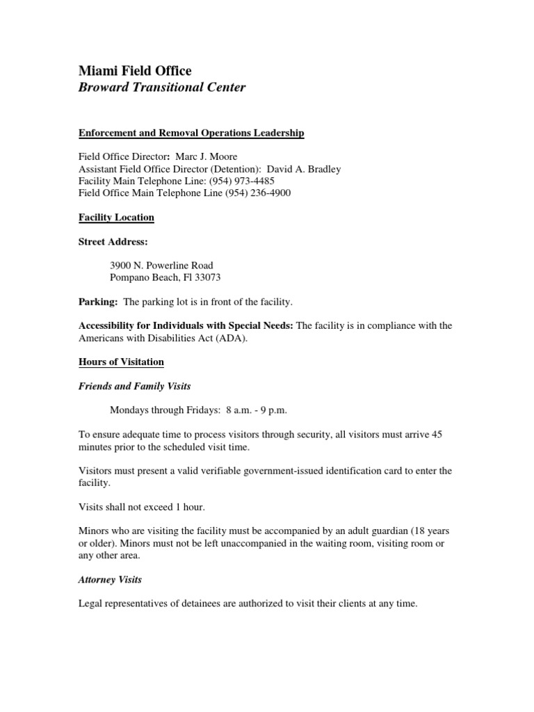 Looking for broward transitional center and ice detainees? Broward transitional center, pompano beach, fl. Miami field office broward transitional center. The broward transitional center, located in pompano beach, florida, is one of many facilities throughout the united states used to detain individuals prior to their appearance in an immigration. The broward transitional center btc is a privately owned forprofit detention center located at 3900 north powerline road pompano beach florida it is ow.